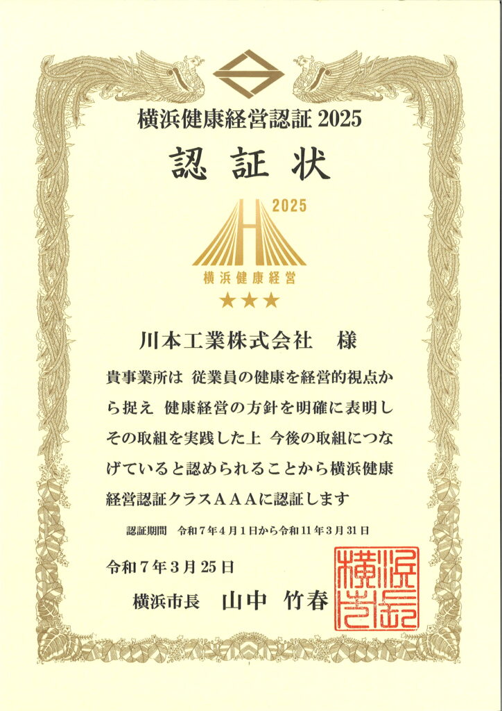 横浜健康経営認証2025クラスAAA認証について